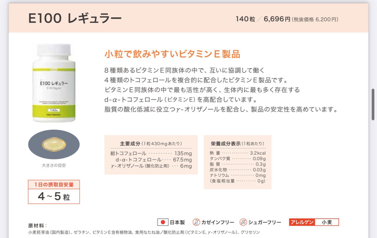小粒で飲みやすい天然ビタミンE 製品